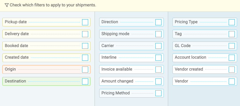 - Just like on the Shipments and Analytics page, you can create custom filters to sort out certain shipments, even saving that search for future use.